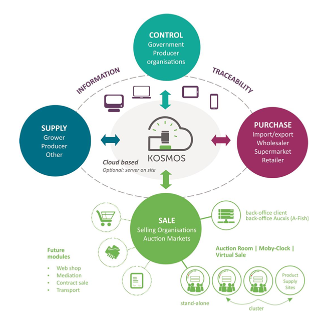 KOSMOS is a centralized digital auction platform connecting all stakeholders across the agricultural supply chain — from producers to buyers — within a transparent, data-driven, and traceable system.